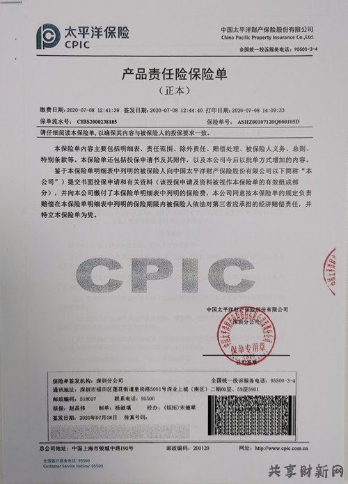 為共享充電寶租借的朋友們的權益,搜電又做成了一件事! 2020年7月8日搜電與中國知名財產保險公司;中國太平洋保險,簽訂了更全面的保險合同《產品責任險》,合同于2020年7月8日生效,保額高達1000萬! 作為國內共享充電寶行業優秀品牌,搜電重視產品的研發和效果,嚴抓產品質量和安全,從進口優質的原料到先進高端的生產設備,再到嚴格把控的生產環境。每一個細節搜電都認真嚴謹,才能保證產品安全有效,真正解決客戶的安全隱患問題。讓每一位搜電客戶都享受更安全更放心的服務。