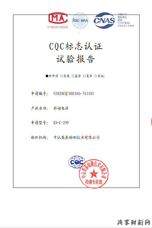 方案二:移動電源申請一年有效的CQC證書,(移動電源內的電池無CQC認證)
